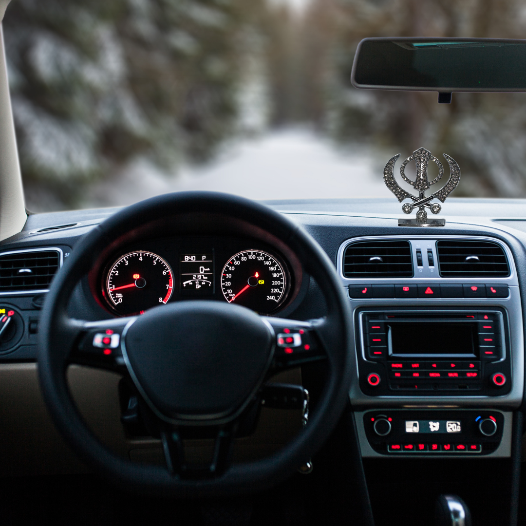 Silver and Gold Khanda Sahib Idol with Sparkling Stones