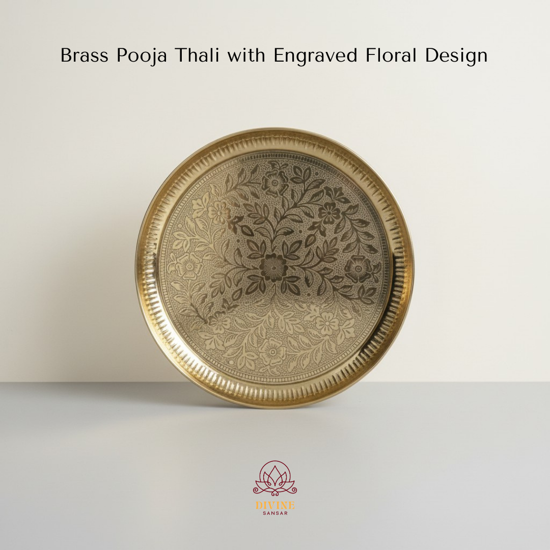 Brass Pooja Thali with Engraved Floral Design