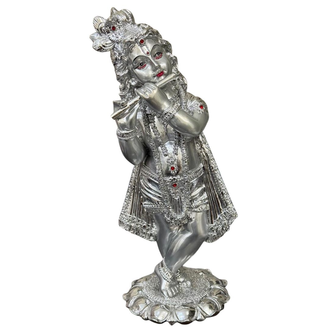 Radiant Silver Krishna Statue