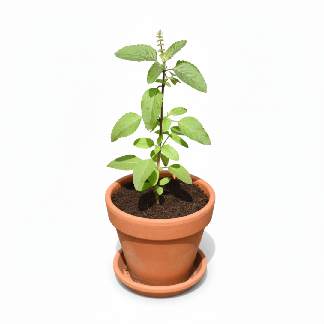 Tulsi Plant sapling with terracotta pot: Ideal for Devotional Pooja & Tulsi Vivah