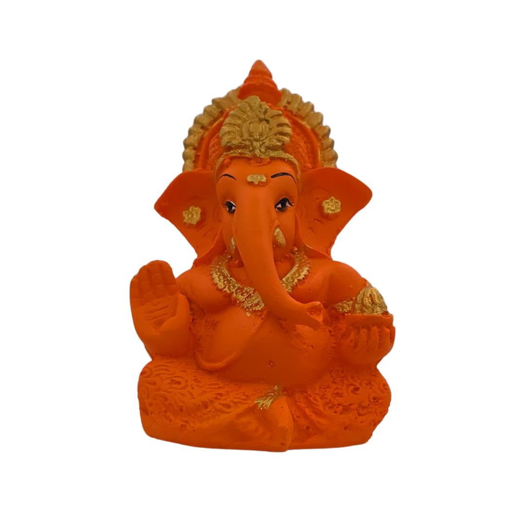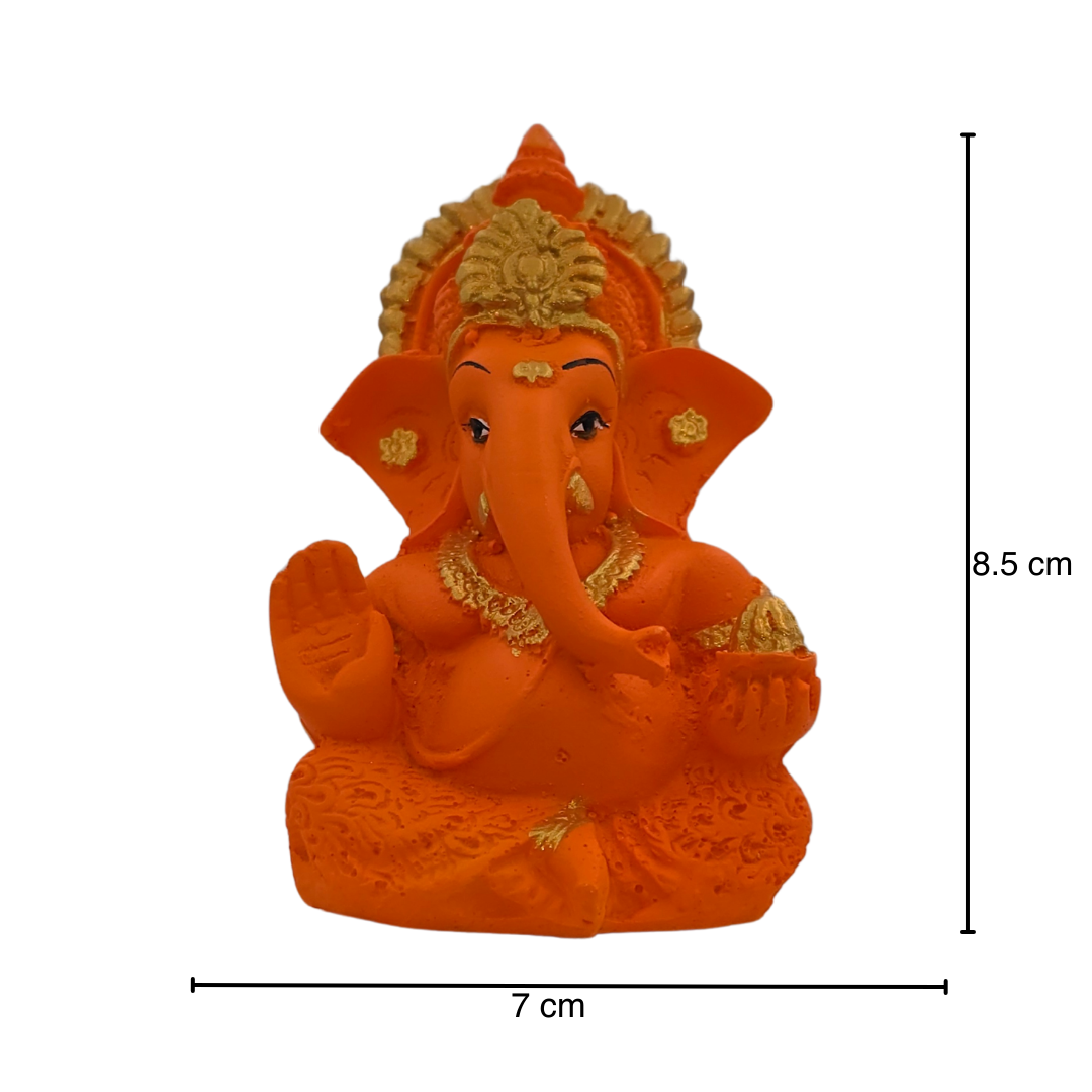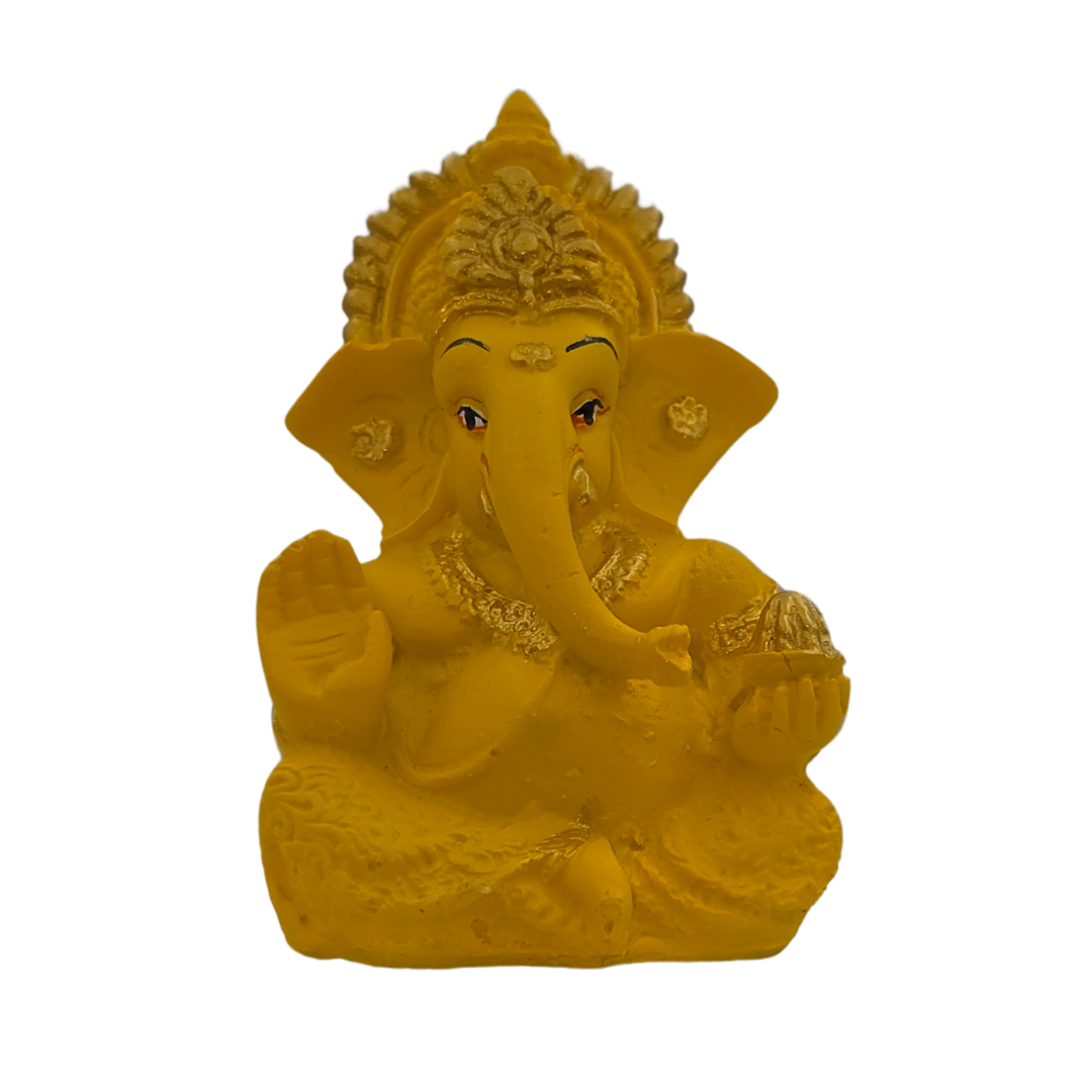 This intricately designed 8.5cm high x 7cm wide statue features Lord Ganesha in a blessing posture, symbolizing positivity, good fortune, and the removal of obstacles. The bright yellow color represents happiness, success, and spirituality, making this idol an ideal choice for those seeking divine guidance.
