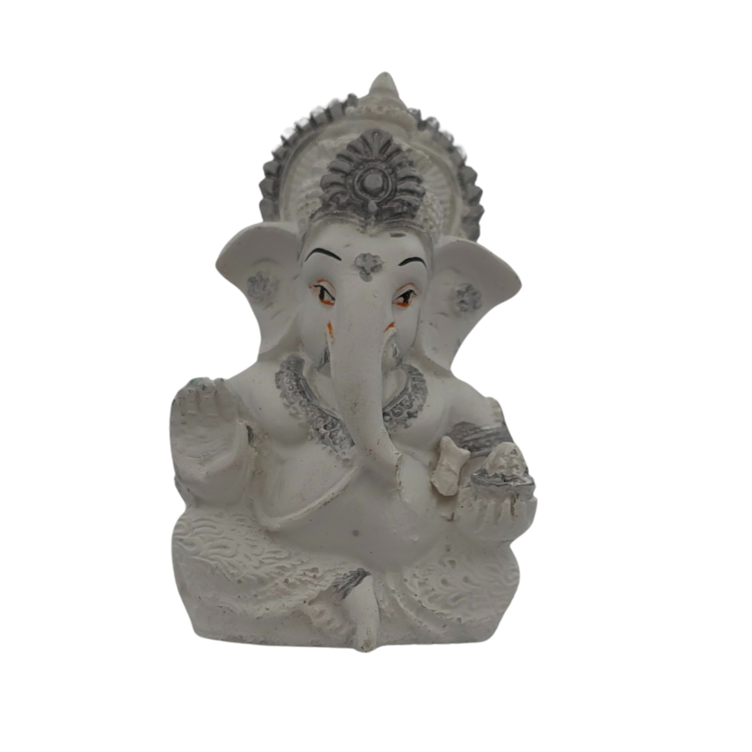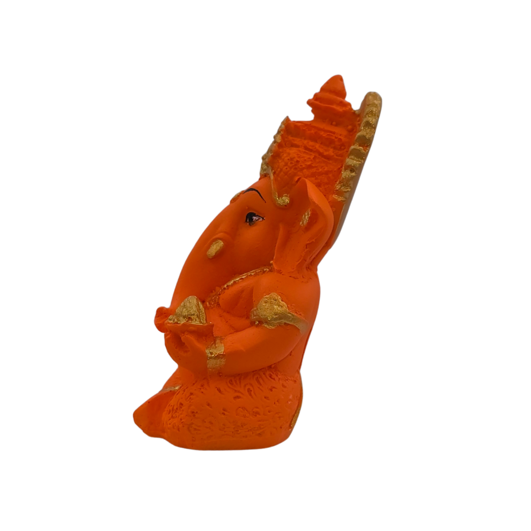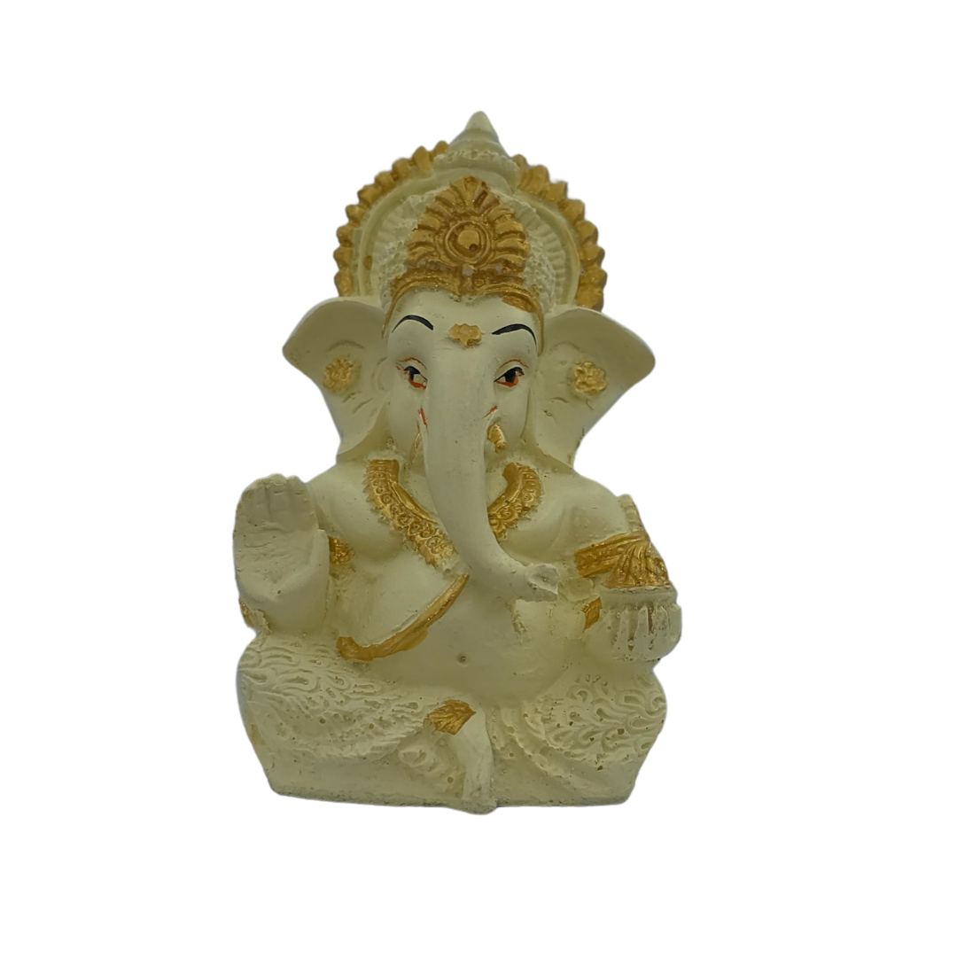 This intricately designed 8.5cm high x 7cm wide statue features Lord Ganesha in a blessing posture, symbolizing positivity, good fortune, and the removal of obstacles. The bright yellow color represents happiness, success, and spirituality, making this idol an ideal choice for those seeking divine guidance.