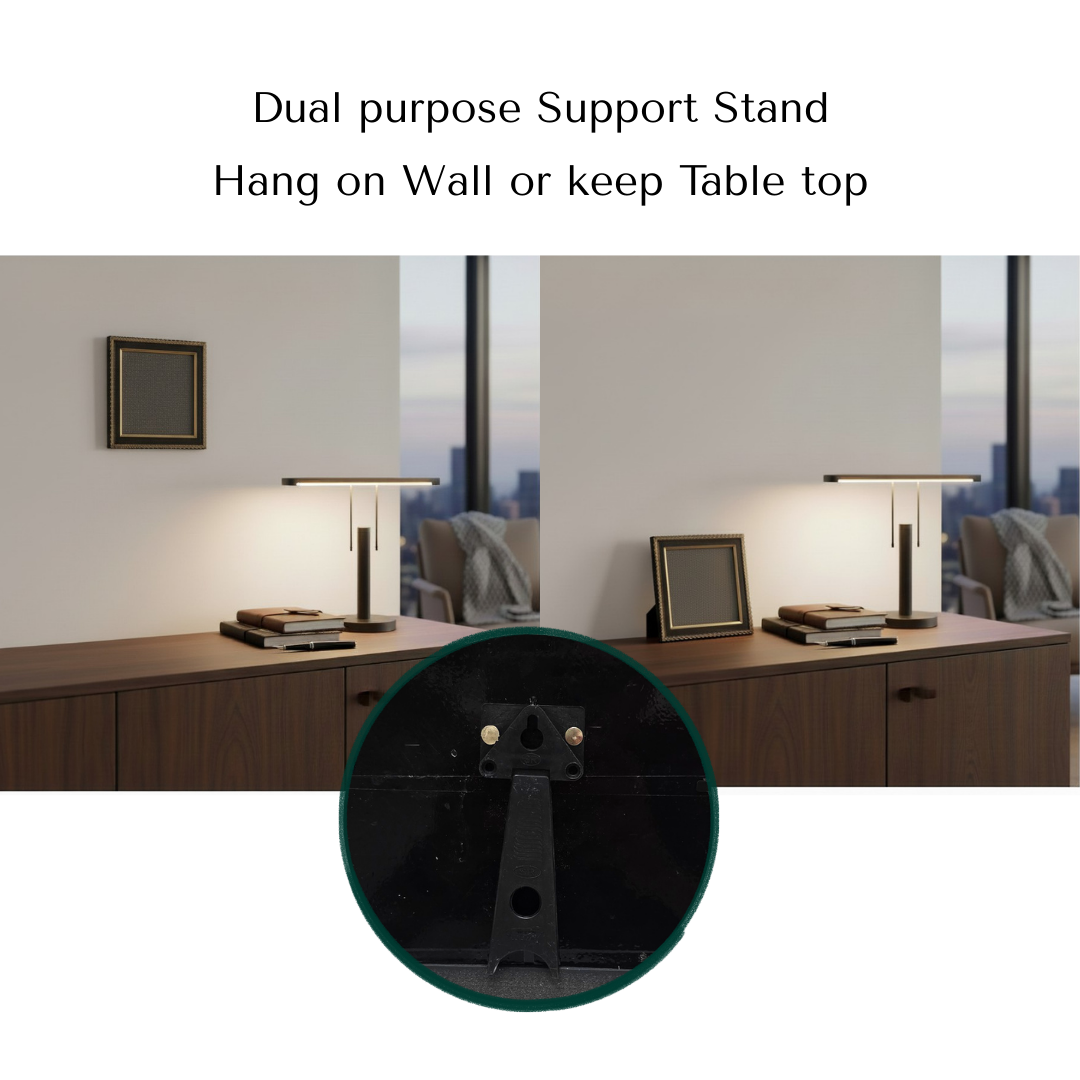 - Support: dual hang + foldable tabletop stand included.