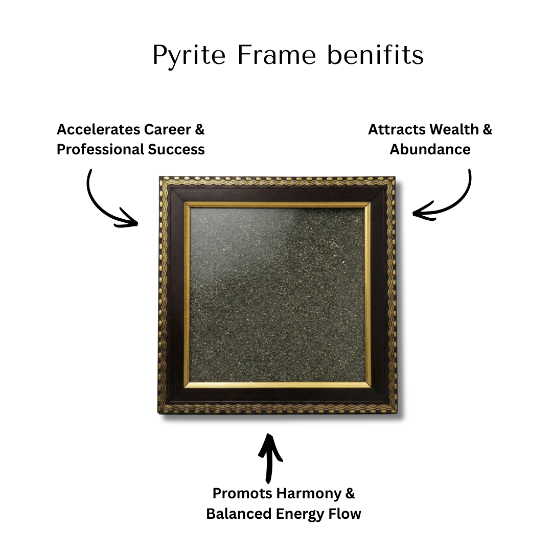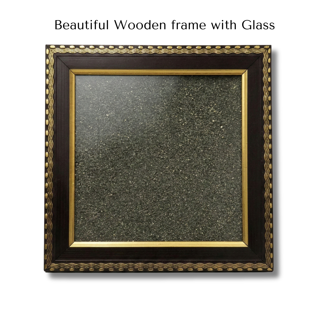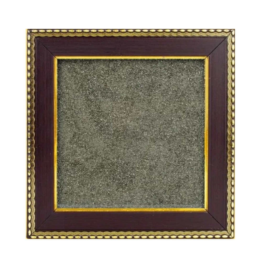 Natural sparkle. Quiet power. Our Blank Pyrite Stone Frame pairs a genuine raw-pyrite textured backdrop with a rich wooden border and gold trim — a gorgeous, mineral-textured canvas ready for yantras, photos or your own creative motif.