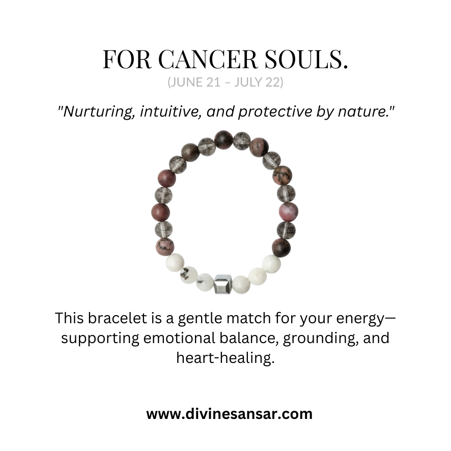 For Cancer souls—nurturing, intuitive, and protective by nature. This Cancer Crystal Bracelet is a gentle match for your energy, curated with stones traditionally associated with emotional balance, grounding, and heart support.