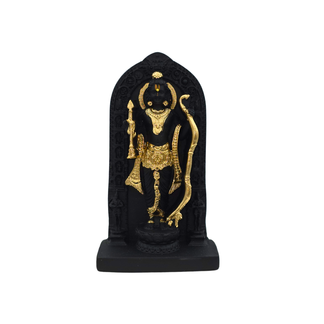 nvite divine blessings, strength, and devotion into your home with this beautifully crafted Shri Ram Idol, featuring an elegant black and gold finish. This 10cm high x 5.5cm wide idol is perfect for home temples, meditation spaces, spiritual decor, and gifting.