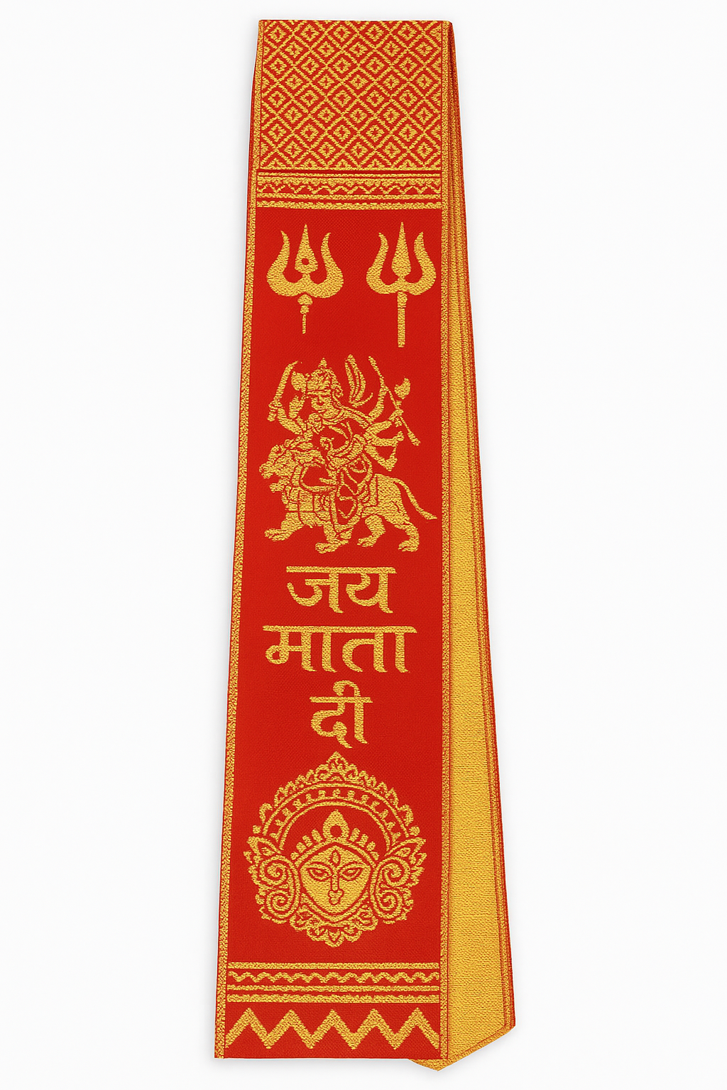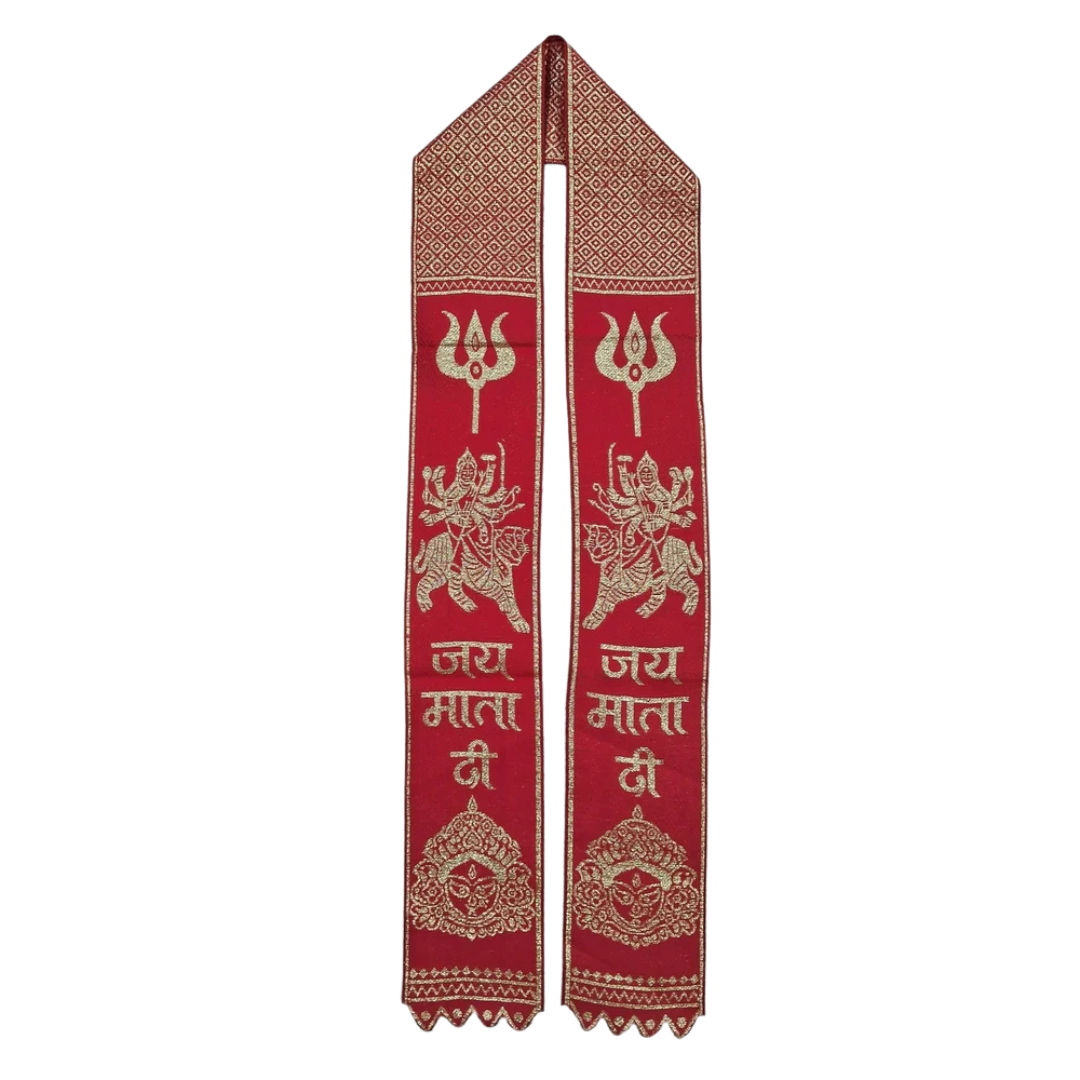 This versatile devotional accessory can be worn around the neck, across the shoulders like a stole, or as a head patka, symbolizing surrender and blessings of Maa Durga.