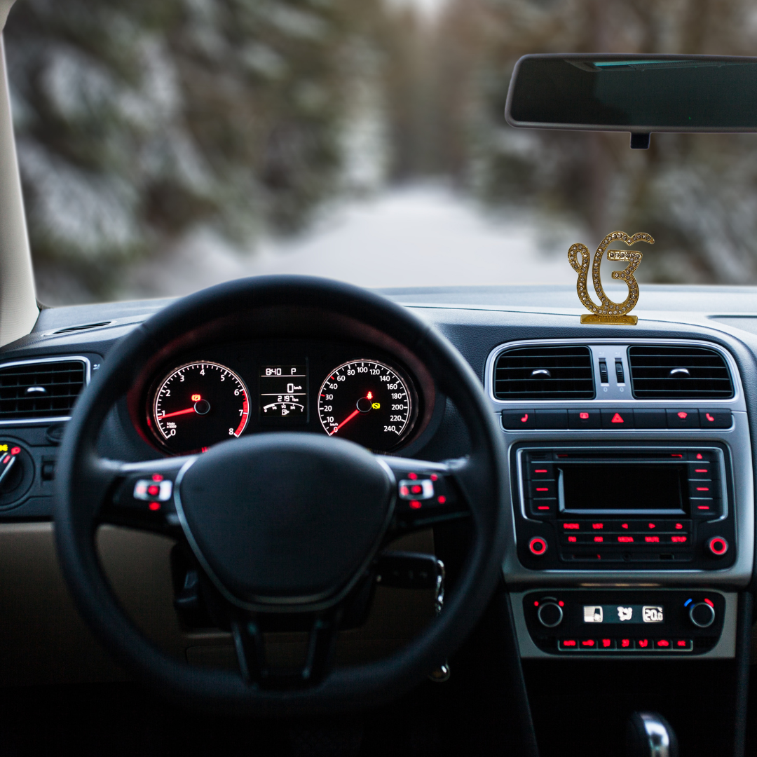 Embrace faith, unity, and divine presence with this Golden Ek Onkar Idol, symbolizing oneness with God and universal truth in Sikhism. This 6cm high x 5.5cm wide elegantly designed idol is adorned with sparkling stones, making it a perfect spiritual accessory for car dashboards, home temples, and office desks.