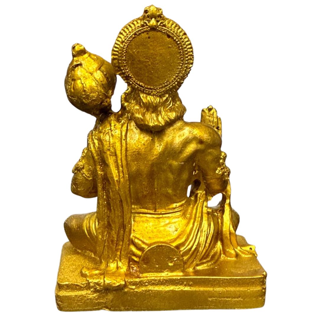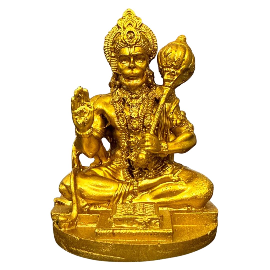 Bring the protective grace of Lord Hanuman into your home with this finely detailed miniature statue — now correctly shown in the blessing (abhaya) pose. Seated with one hand raised in blessing and the other holding his gada (mace), this idol captures Hanumanji’s strength, devotion and his role as guardian and protector. The warm gold-tone finish gives it a temple-like presence while the compact size makes it perfect for small puja shelves, work desks, or travel shrines.