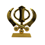 Showcase your faith, strength, and devotion with this Golden Khanda Sahib Idol, the sacred emblem of Sikhism, representing divine power, righteousness, and unity. This 6.5cm high x 6cm wide idol is crafted with a sleek gold-tone finish, making it a perfect religious decor piece for car dashboards, home temples, and office desks.