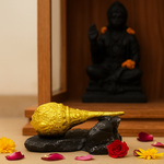 Bring a little extra protection and devotion to your space with this beautifully crafted Hanumanji Gada. At a convenient 9cm × 6cm × 4cm, this miniature mace is richly detailed — the sculpted head features traditional motifs while a deep black base gives the piece a striking, museum-style contrast. The gold finish is hand-applied to highlight the carvings and lend a festive, auspicious glow during pooja or daily worship.