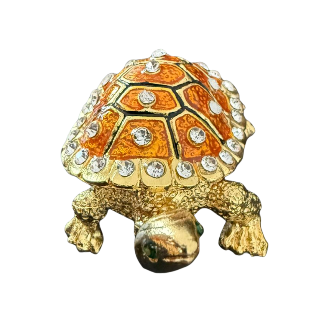 Bring a sweet, symbolic ritual into your home with this Icchapurti Kachhua — a miniature wish-granting turtle crafted in a warm gold tone. Icchapurti literally means wish-granting; the turtle represents steady progress, protection and long life. The hinged shell opens to reveal a smooth enamel interior specifically designed for placing a tiny folded paper on which you write your heartfelt wish. Close it gently, keep the turtle beside your puja thali or near flowers (not on the altar itself if you prefer), and let this small ritual act serve as a daily reminder of your intention.