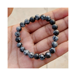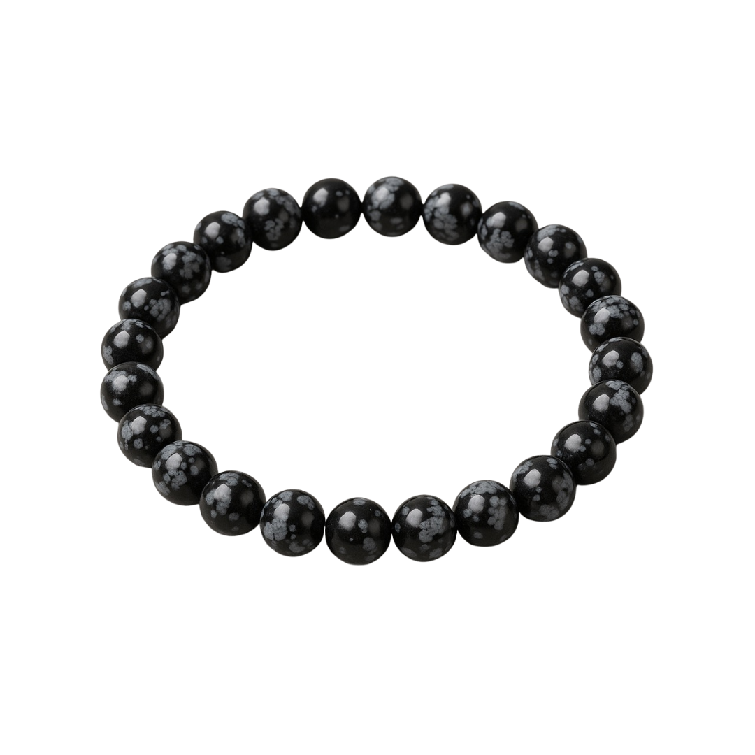 Meet the Inner Peace Bracelet — Snowflake Obsidian, a minimalist, grounding bracelet made to help still the mind and steady the emotions. Each polished Snowflake Obsidian bead shows delicate grey-white “snowflake” inclusions against deep black—nature’s little reminders that clarity and calm can appear even in dark moments. Hand-strung on a durable elastic cord, the bracelet slips on easily and sits comfortably for everyday wear.