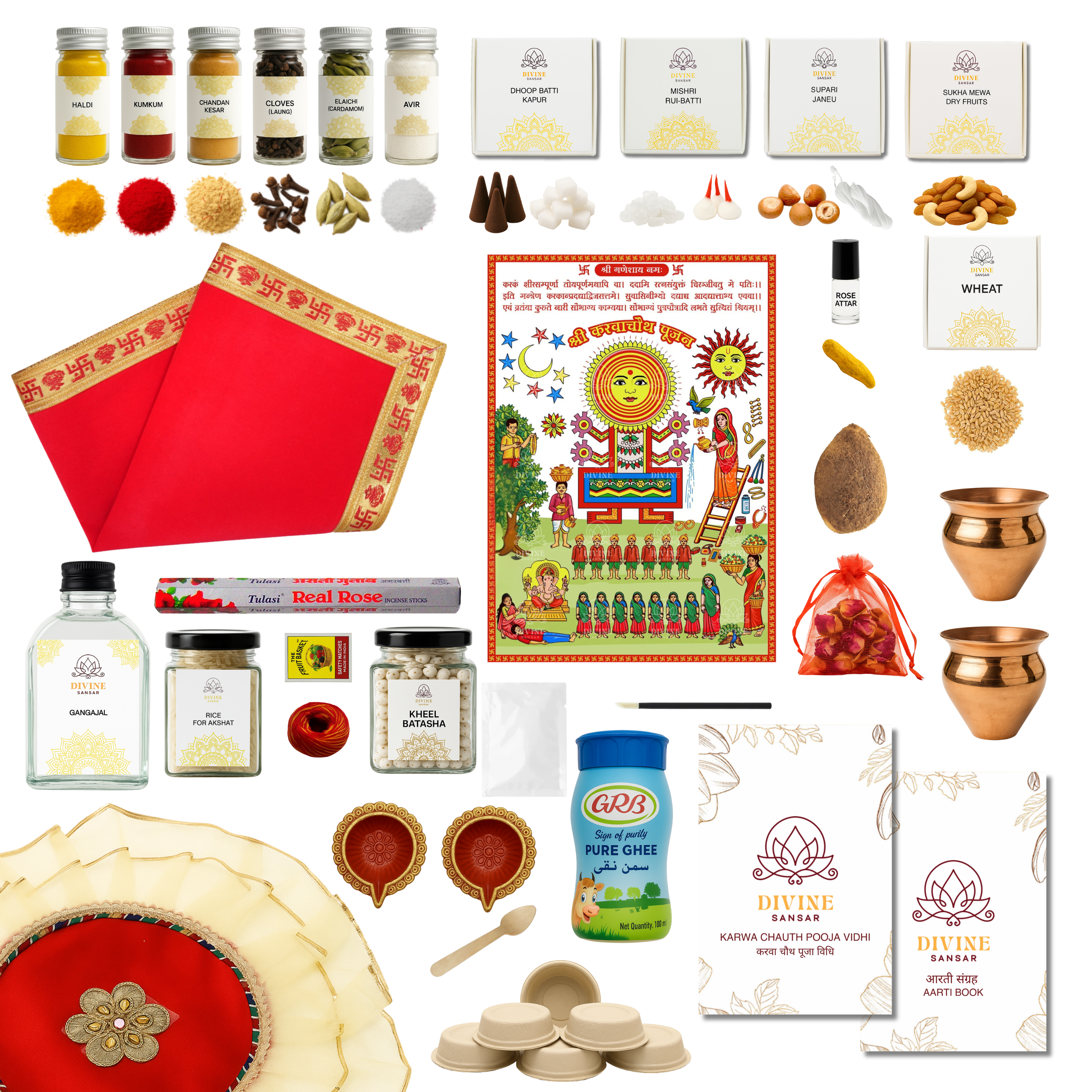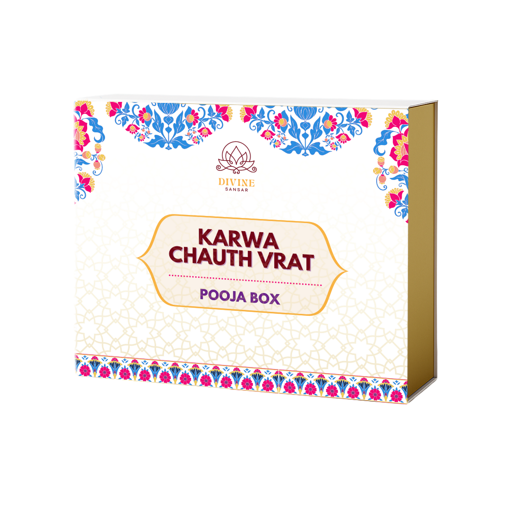 Celebrate the divine bond of love and devotion this Karwa Chauth with our Royal & Designer Pooja Box, thoughtfully curated by Divine Sansar.