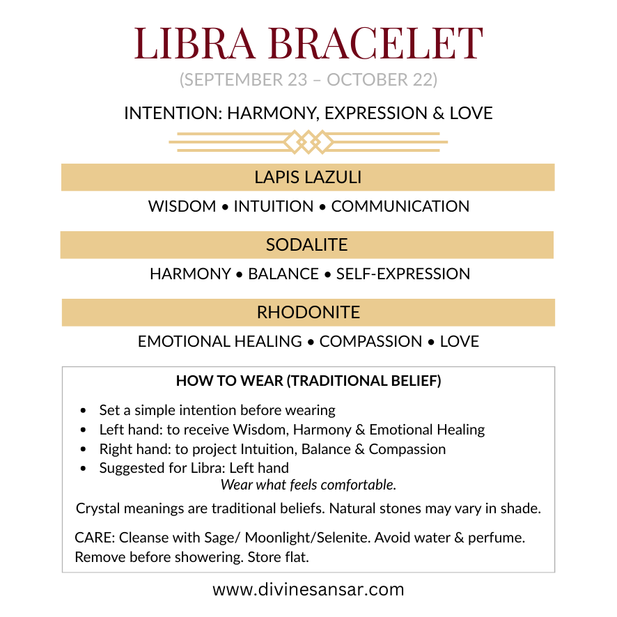 libra crystal bracelet uae, libra bracelet uae, lapis lazuli bracelet uae, sodalite bracelet uae, rhodonite bracelet uae, zodiac bracelet dubai, gift for libra uae