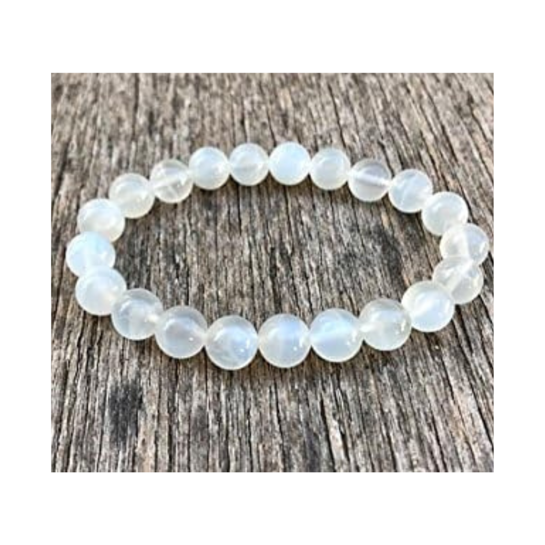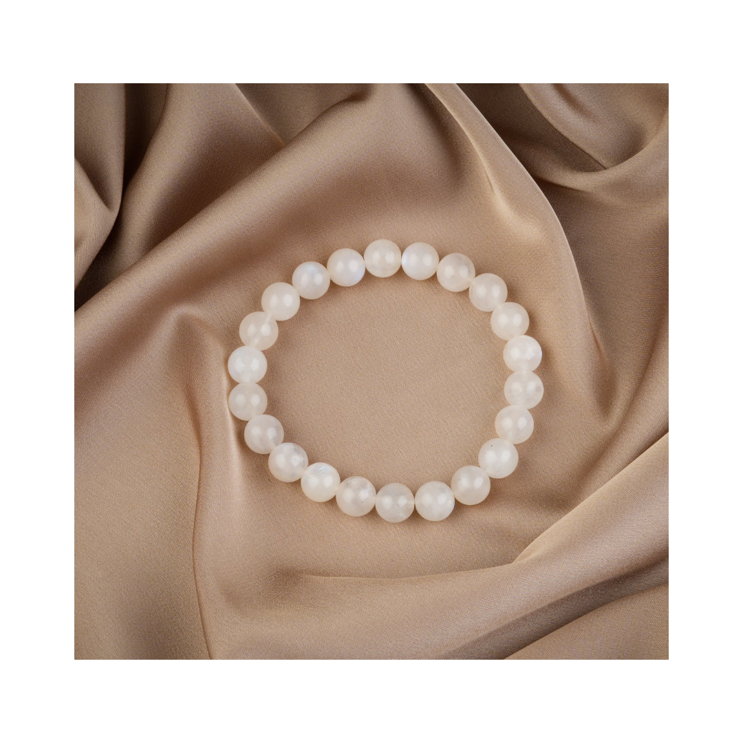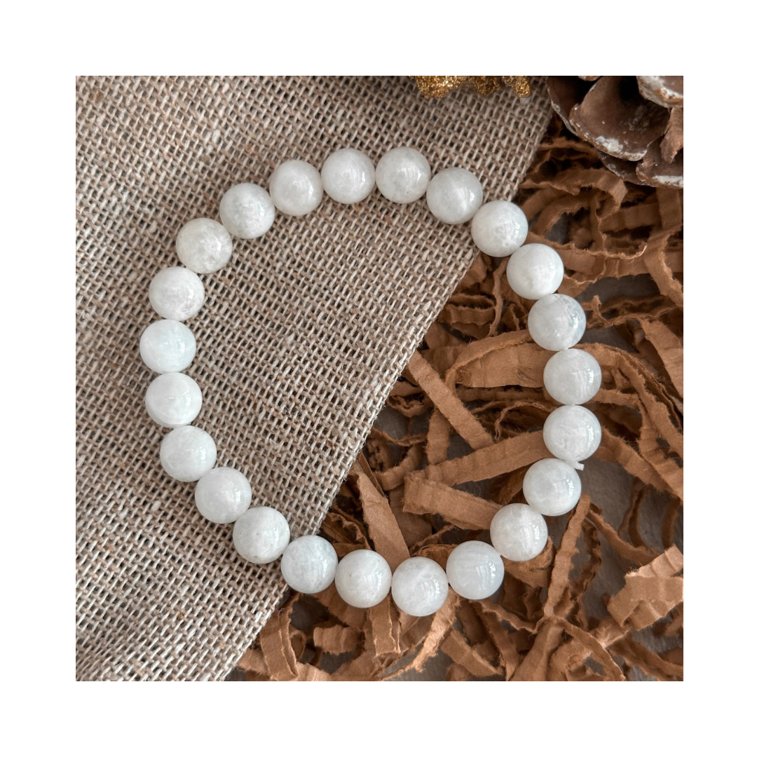 Meet the LunaGlow Bracelet — a delicate, wearable nod to moonlight and quiet intention. Polished natural moonstone beads glow with subtle adularescence (that soft blue-white shimmer) and catch the light as you move. The look is elegant and minimalist, perfect for everyday wear or as a calming ritual piece during meditation, moon rituals, or before sleep.
