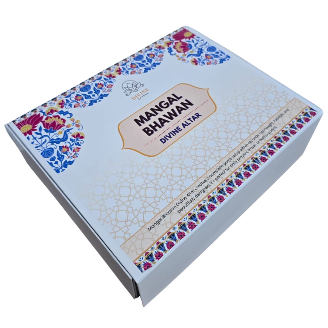 Make everyday devotion simple and elegant with Mangal Bhawan — a stylish, lightweight cardboard temple that transforms from a neat gift box into a sacred mini-mandir in seconds. At 24 × 30 × 8.5 cm it’s designed for modern living: unfolds into a decorative backdrop for your murti, tucks away flat when not in use and travels easily.