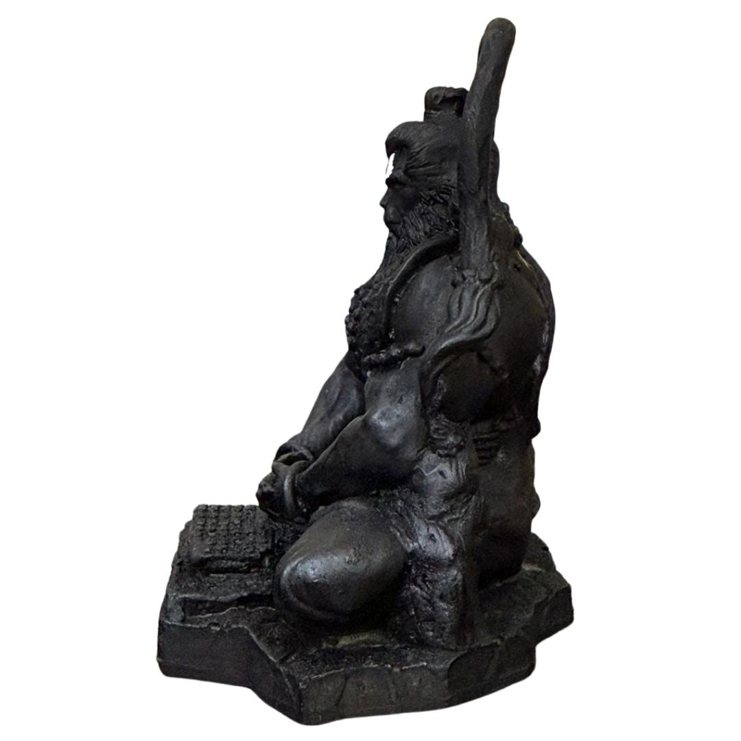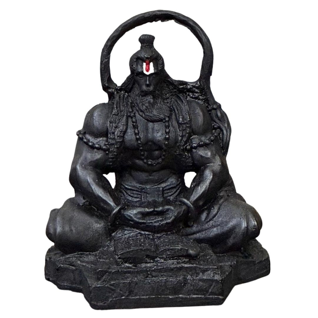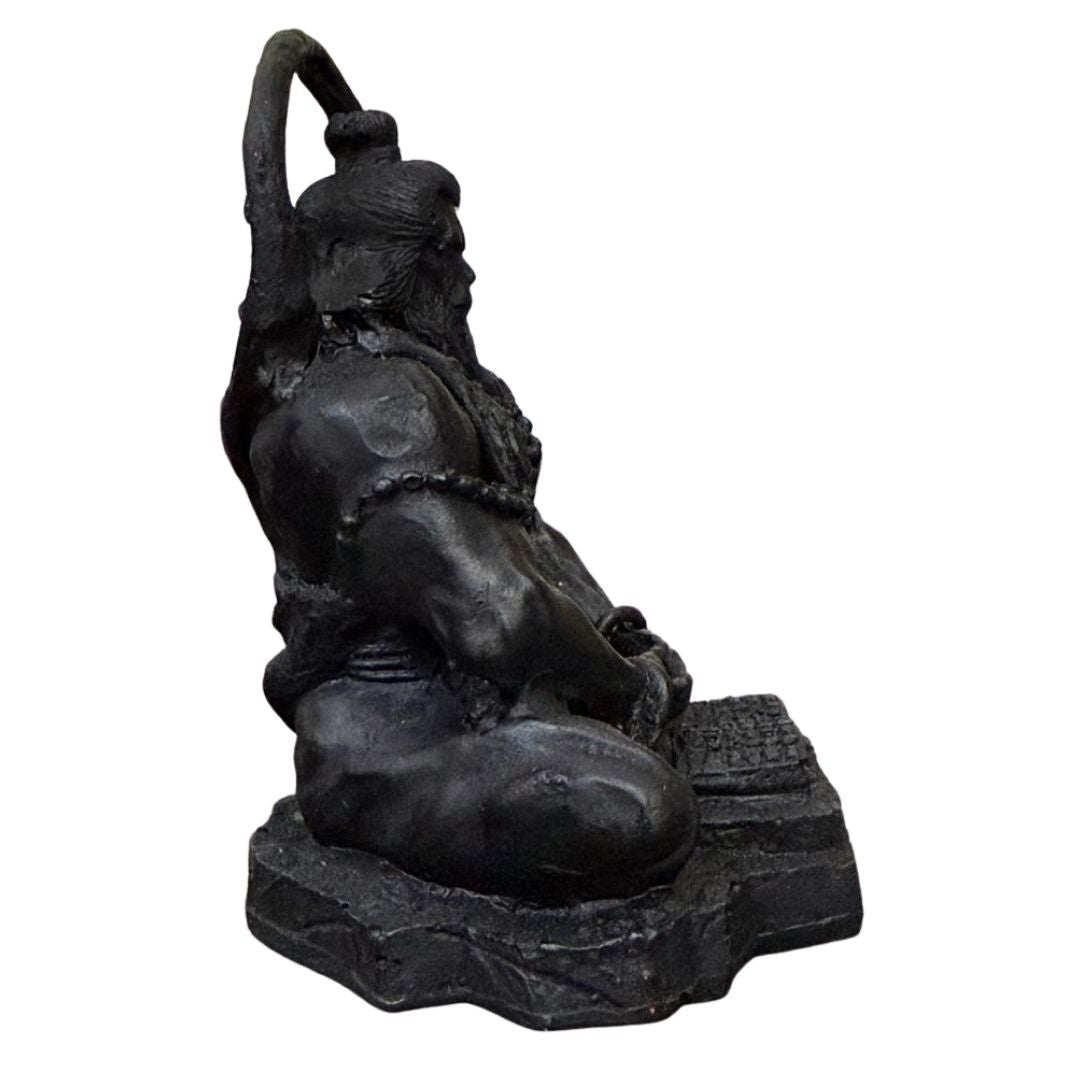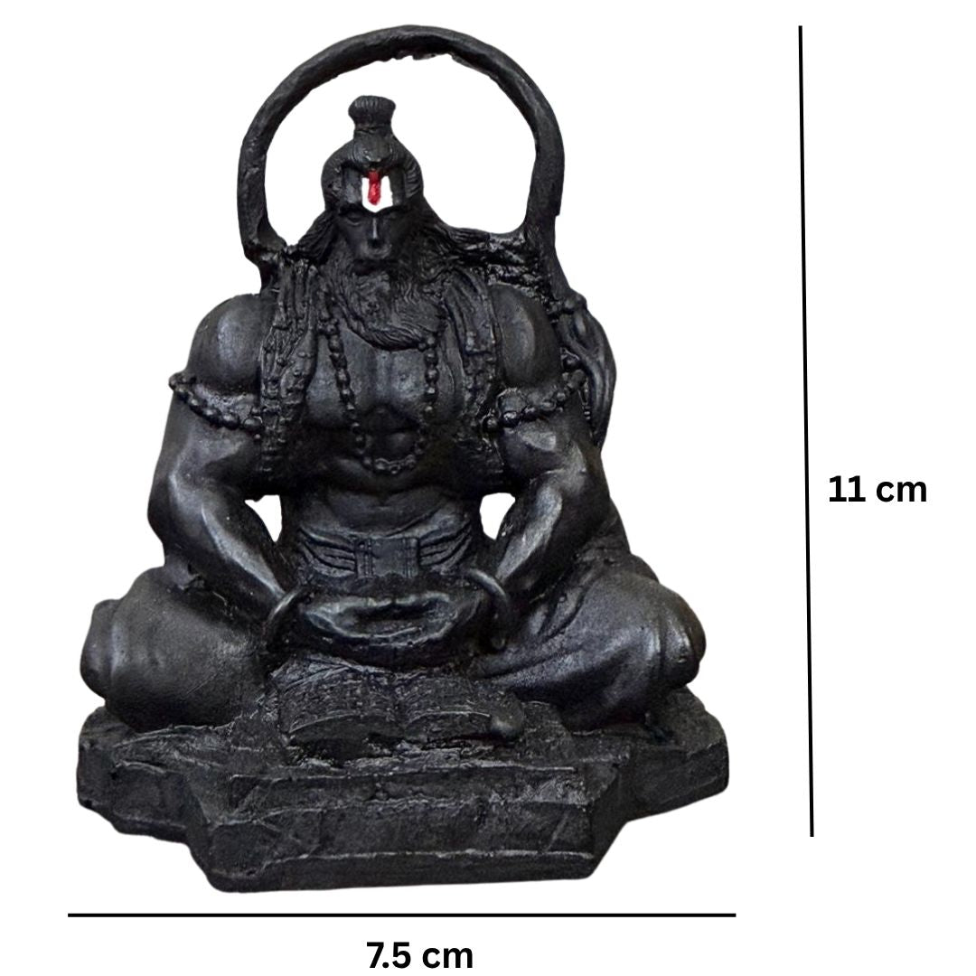 Bring the courage and devotion of Lord Hanuman into your everyday space with this finely detailed, compact idol. Sculpted in a seated, meditative posture, the statue highlights Hanumanji’s strong form, sacred markings, and the gentle intensity of a devoted heart — all finished in a tasteful matte-black coating that lends depth and a temple-stone look.