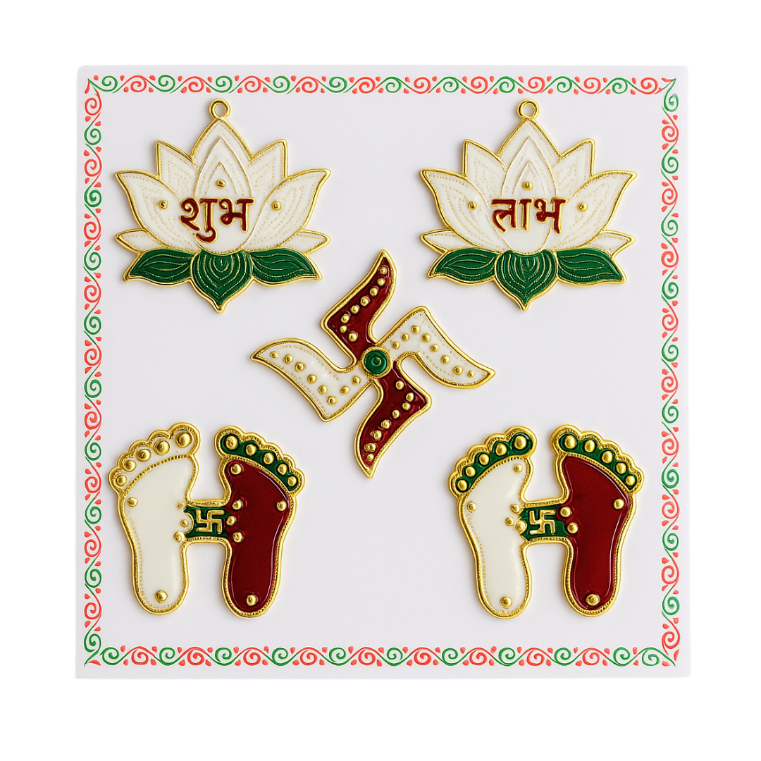 Complete Set of 5 Pieces – Shubh, Labh, Swastik, and 2 pairs of feet