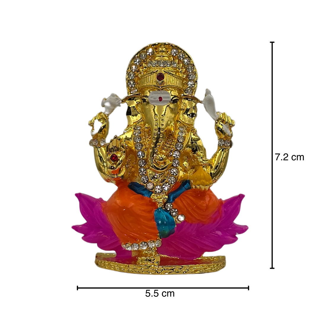 Multicolor Golden Ganpati Idol with Sparkling Stones