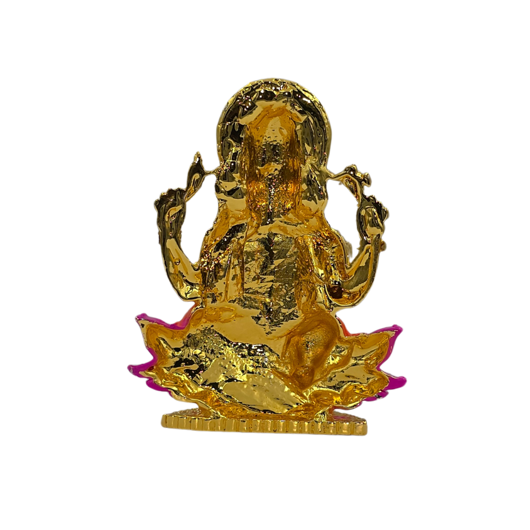 Featuring a golden Lord Ganesha adorned with sparkling stones, this idol is set on a beautiful pink lotus base, symbolizing purity and enlightenment. With intricate Meenakari work, vibrant clothing, and a majestic crown, this idol is a perfect blend of spirituality and artistry.