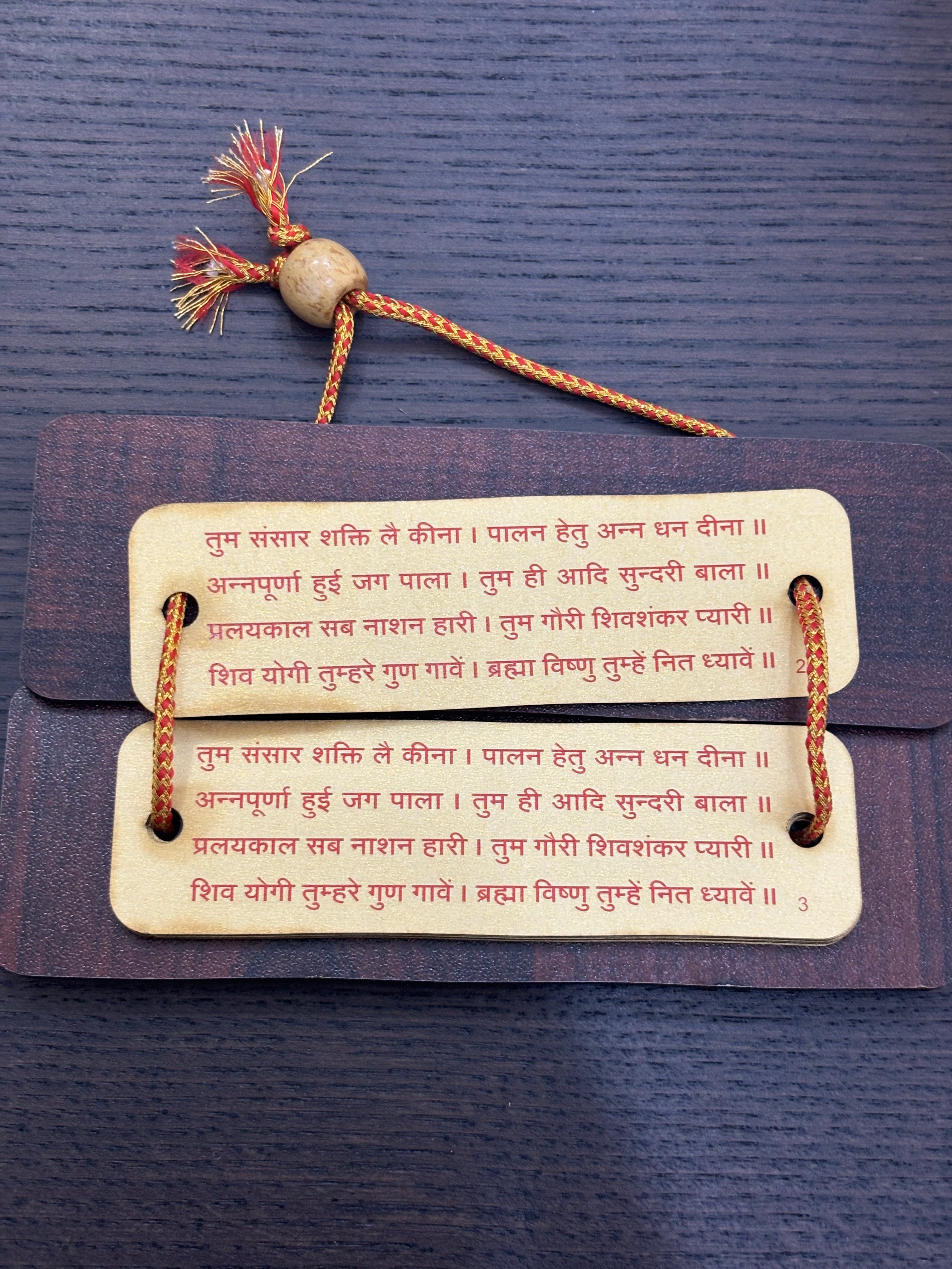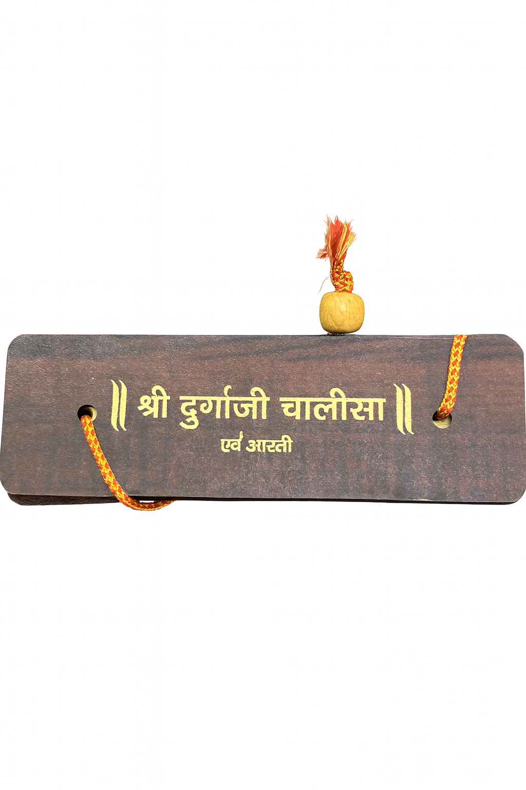 Experience the divine blessings of Goddess Durga wherever you go with this beautifully handcrafted Pocket Wooden Durgaji Chalisa. Encased in a polished wooden cover with golden Devanagari engraving, this compact devotional book contains the complete Durga Chalisa along with Aarti, making it an ideal spiritual companion for daily prayers and special occasions.
