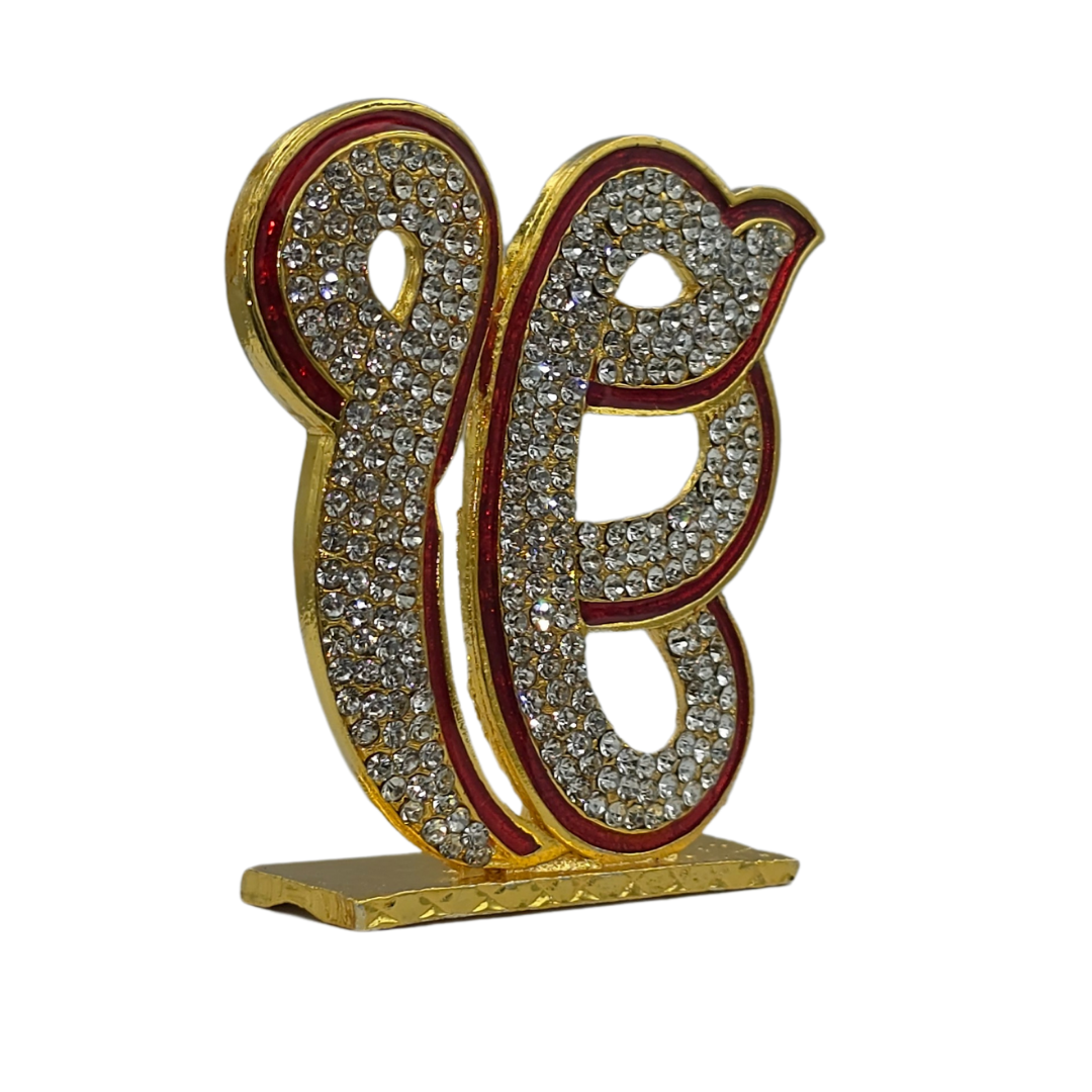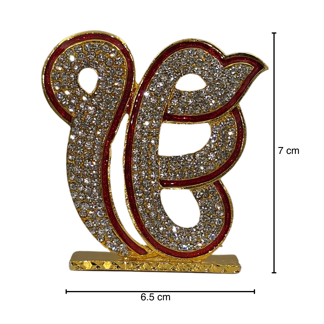 Celebrate faith, spirituality, and divine blessings with this exquisite Golden Ek Onkar Idol, a sacred symbol in Sikhism representing oneness, truth, and devotion to Waheguru. Crafted with a luxurious gold-tone finish, embedded sparkling stones, and red accents, this 7cm x 6.5cm idol is the perfect addition to car dashboards, home temples, office desks, and gifting.