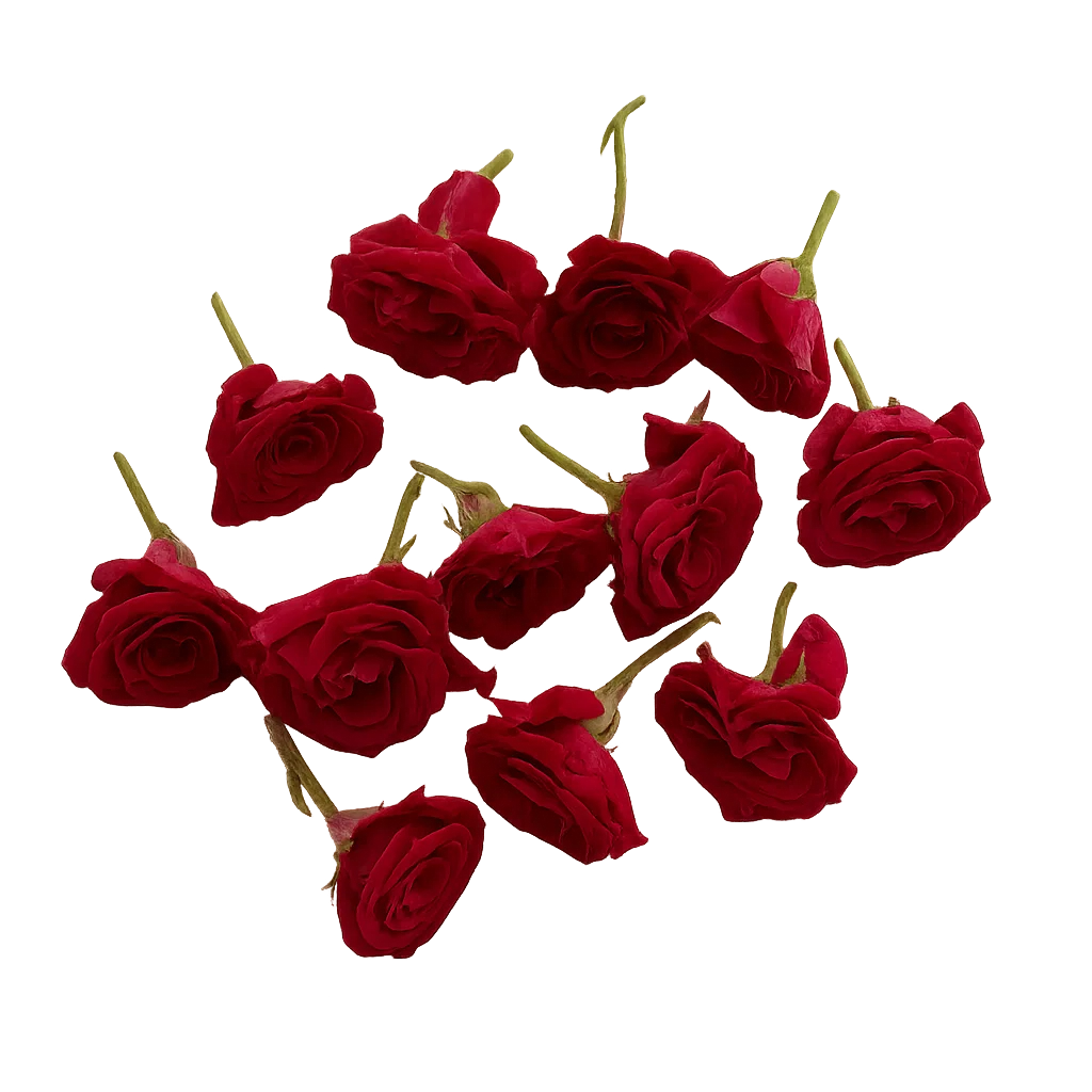 - Flower: Fresh red rose heads