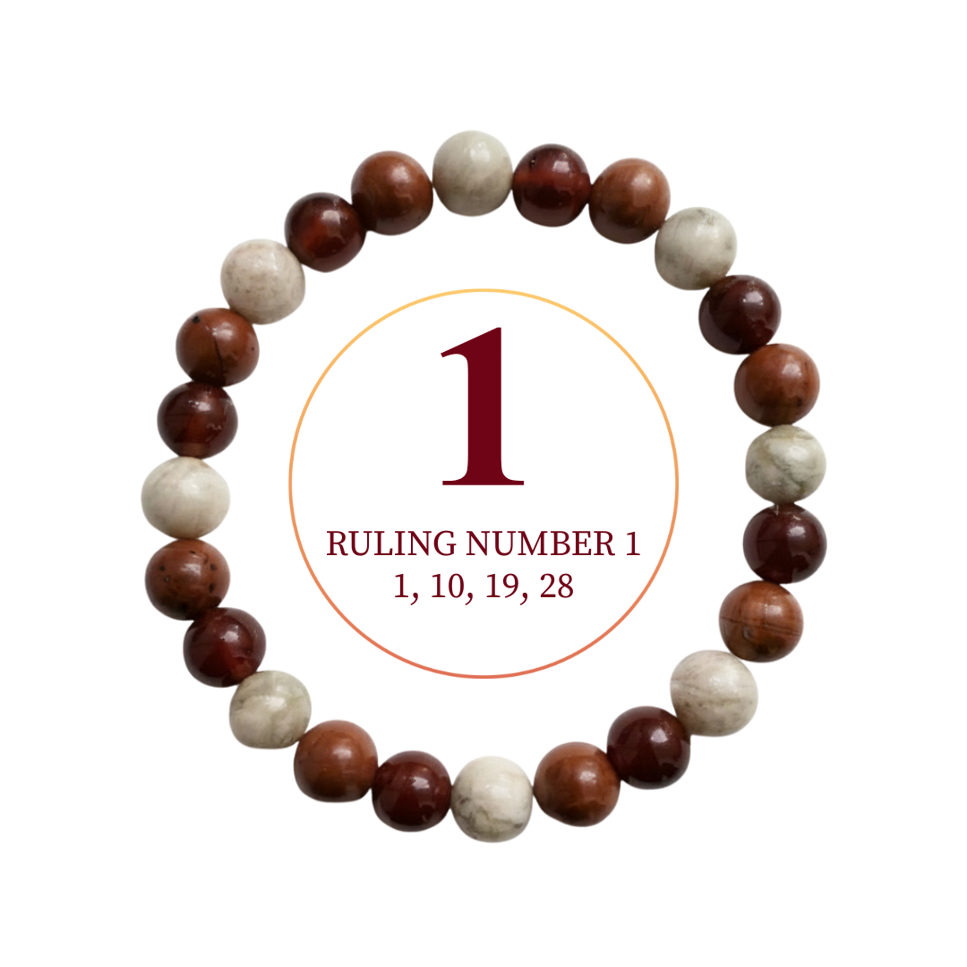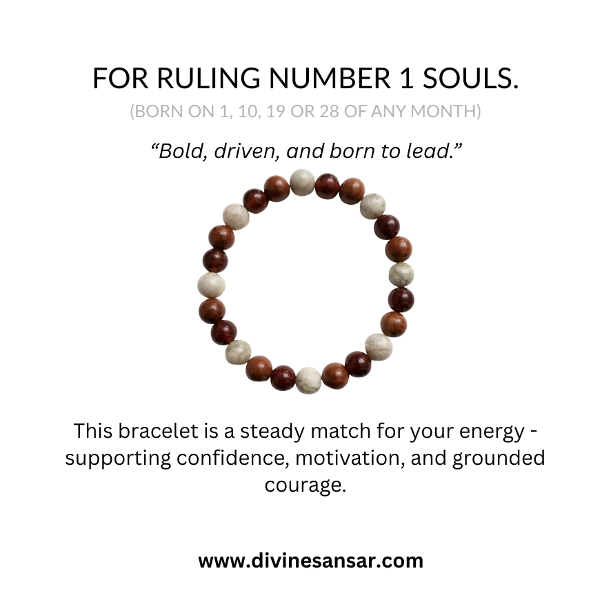 A bold, energizing bracelet for Ruling Number 1—traditionally linked with confidence, leadership, and steady courage. Made with 8mm natural stones, 24 beads, on a comfortable elastic fit.