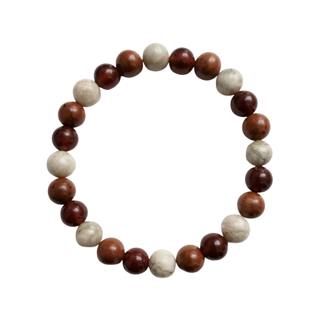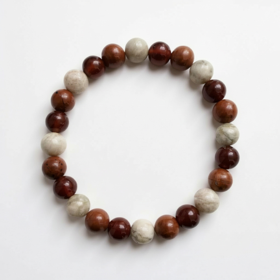 This bracelet is curated with Carnelian, Sunstone, and Red Jasper—three crystals traditionally linked with confidence, vitality, and grounded action. Wear it as a daily reminder to show up with courage and clarity.