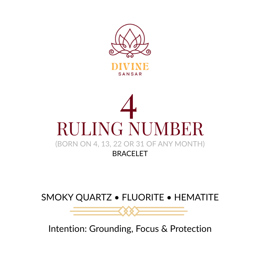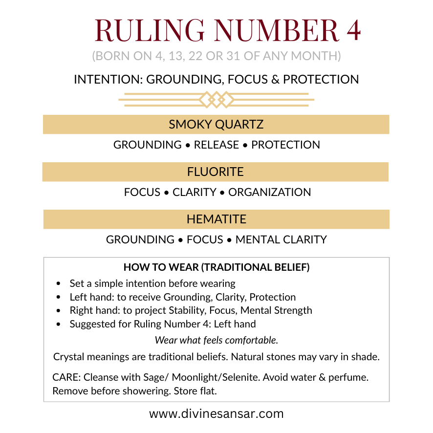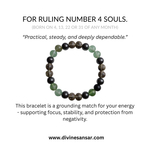 Ruling Number 4 energy is practical and steady—the builder. This bracelet is curated for grounding and mental clarity when you want to stay focused and protected from negativity (traditional belief).
