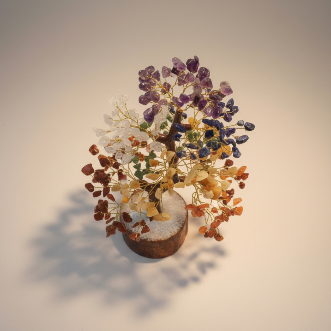Bring harmony, healing, and beauty into your home with our Seven Chakra Crystal Tree of Life — a handcrafted masterpiece that does more than just look beautiful. Unlike ordinary crystal trees, this one is self-charging.