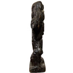 Invoke reverence and protective calm with this finely sculpted miniature Shanidev statue. Carved in a classic standing posture and finished in a deep temple-black tone, the piece captures the austere presence associated with Shani — complete with crisp drapery detail and distinctive white-inlay eyes that draw the gaze. Its compact footprint makes it ideal for narrow altars, car shrines, study desks or compact home puja spaces where space is limited but devotion is wholehearted.