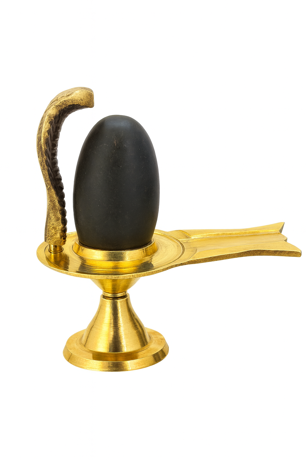 Material: Natural Narmada stone Shivling with Brass Jalheri (Yoni).