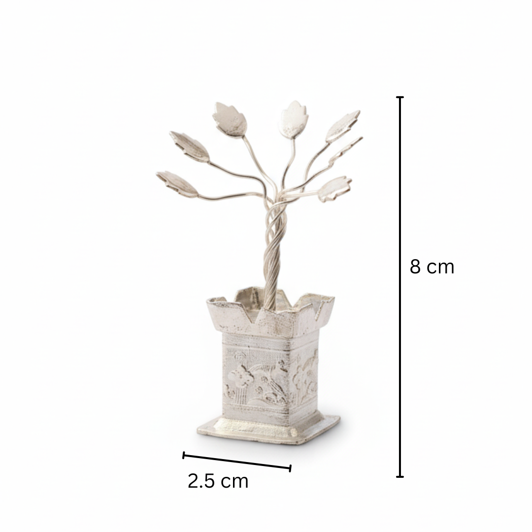 Made from high-quality silver-plating, this plant is a work of art that will enhance the aesthetic appeal of any space. Its intricate detailing and delicate design make it a perfect gift for friends, family, or anyone who appreciates the beauty and symbolism of Tulsi.
