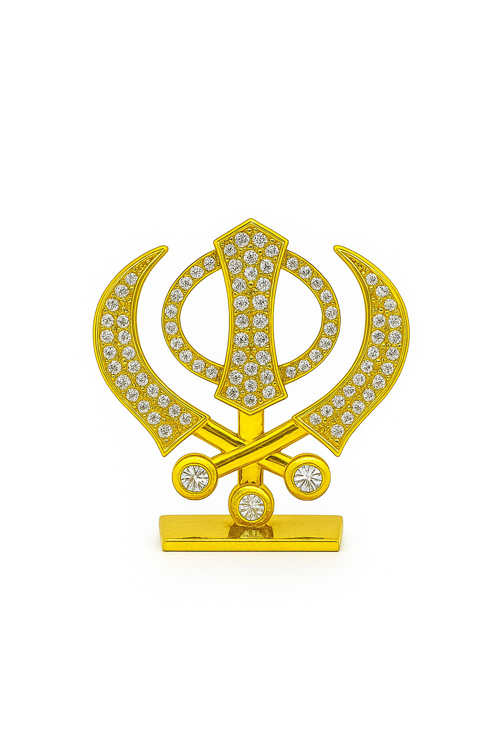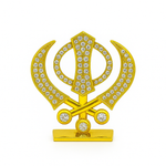 Silver and Gold Khanda Sahib Idol with Sparkling Stones