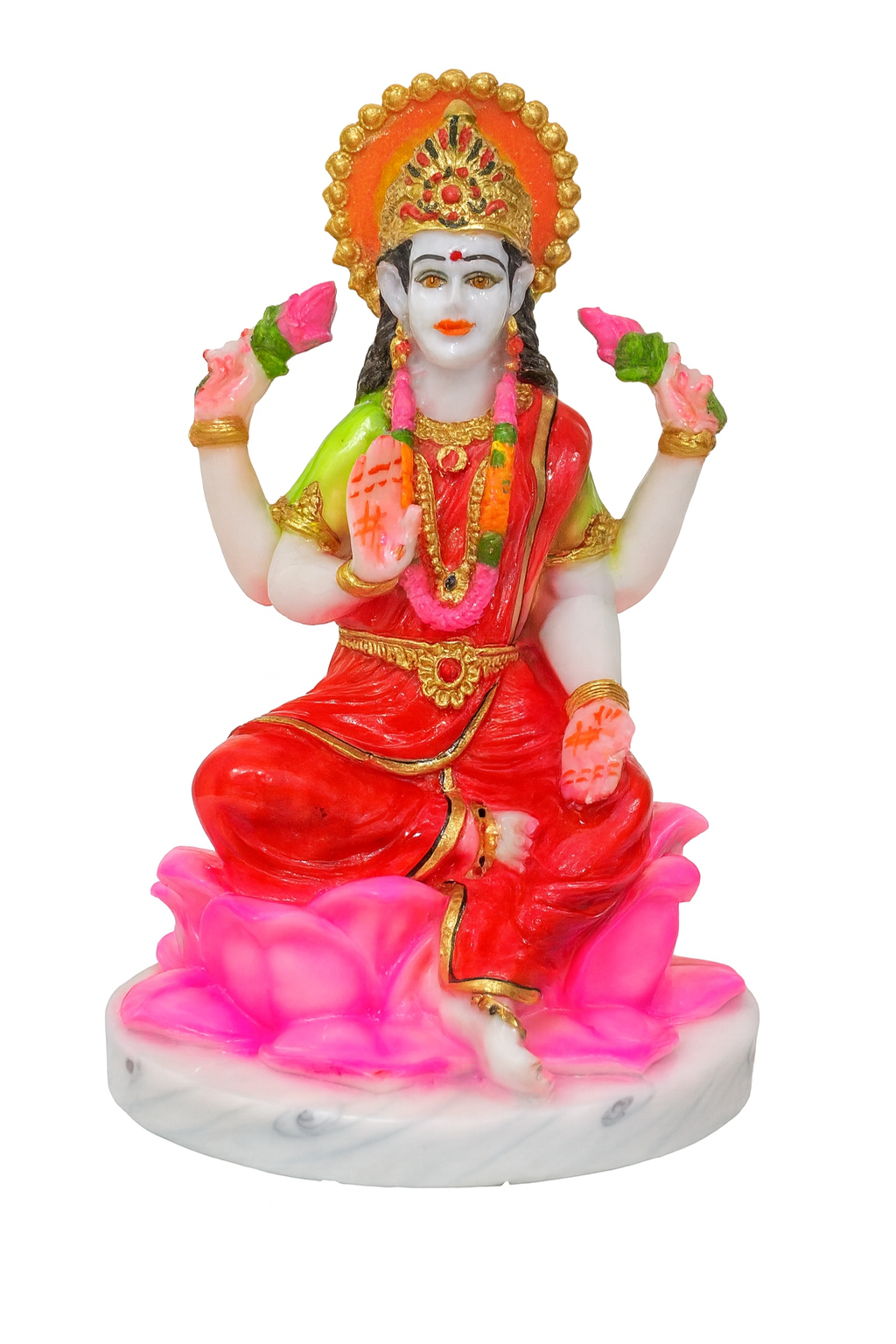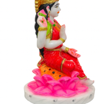 Bring home the divine blessings of Maa Mahalaxmi with this exquisitely designed idol, symbolizing wealth, purity, and abundance. The Goddess is depicted seated gracefully on a vibrant pink lotus, adorned with a golden crown, ornaments, and traditional attire, holding lotuses in her hands that represent prosperity and spiritual growth.