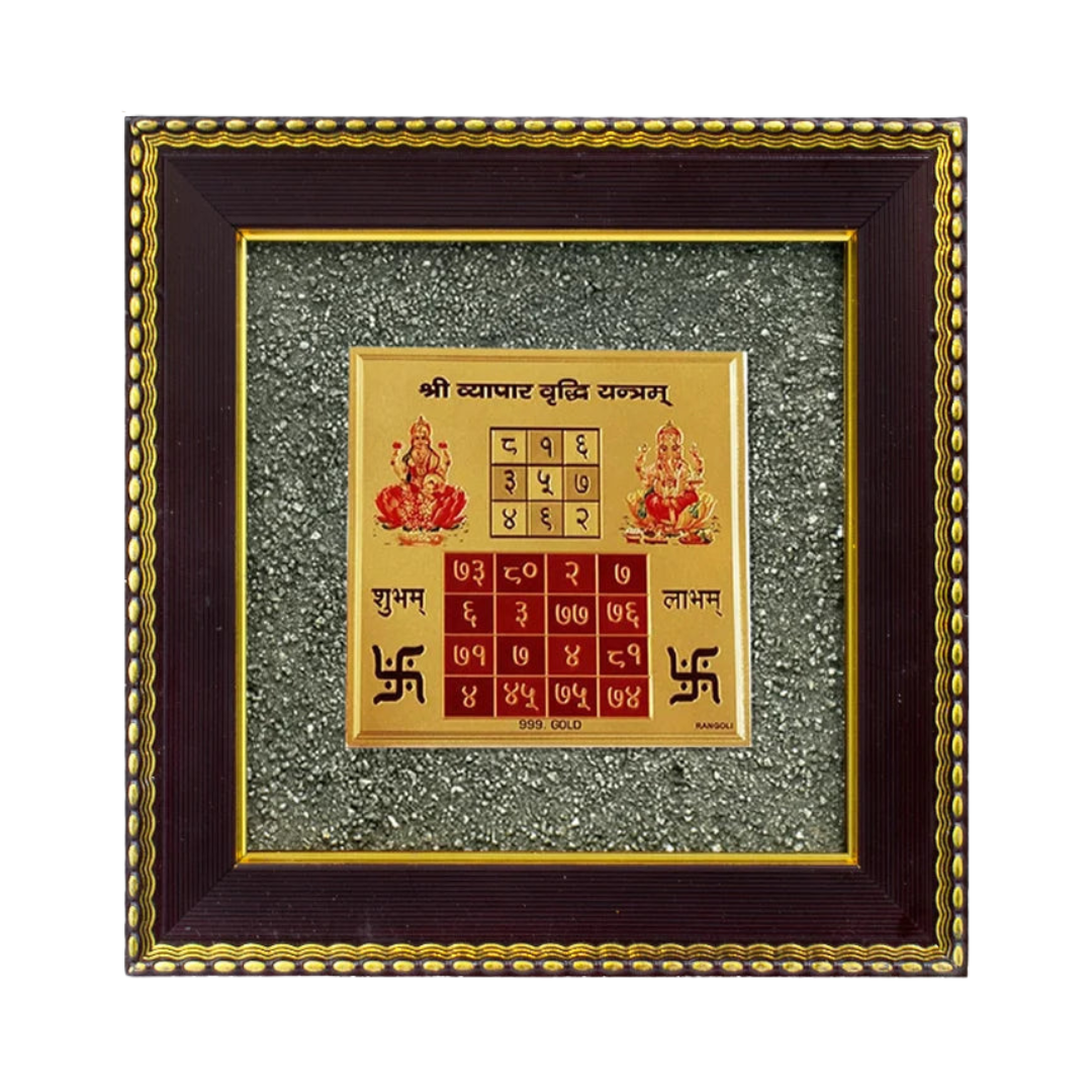 Divine Sansar Pyrite Stone Frame with Vyapar Vridhhi Yantra