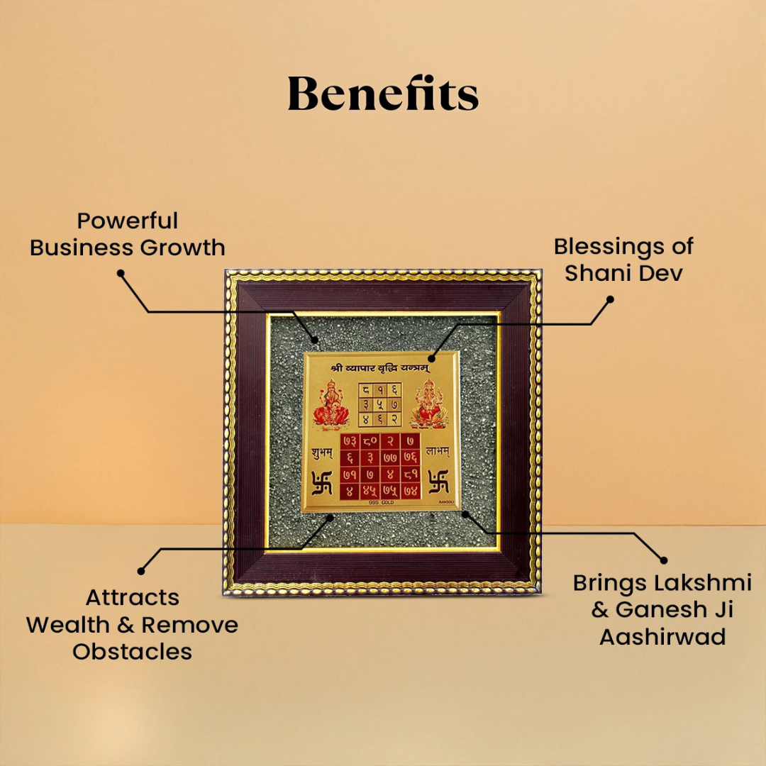 - Authentic Vyapar Vridhhi Yantra mounted at the centre for focused vibrational energy.